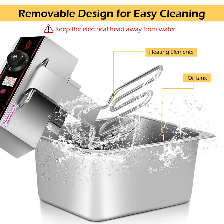 Stainless Steel Construction with Lid: The fryers durable stainless steel construction ensures longevity and ease of maintenance, while the included lid prevents oil splashes, keeping your cooking area clean and safe. The package also includes two electroplating fryer baskets with cool-touch handles for added convenience.