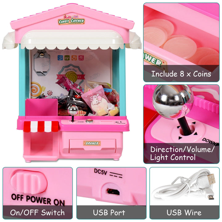 Electric Claw with Multi-Color Light: Engage your child with the lively music and bright, colorful lights that enhance the pretend play experience. The machine is perfect for filling with a variety of toys or candies, ensuring theres always something exciting to catch.