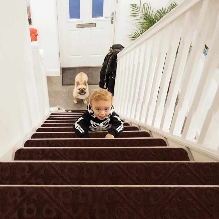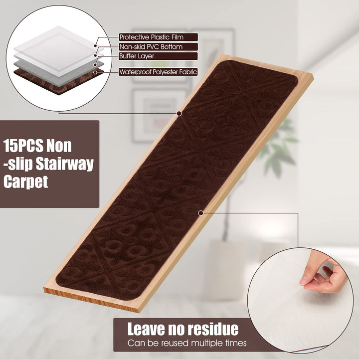 15 Pieces Indoor Non-Slip Stair Carpet Mats for Wooden Steps