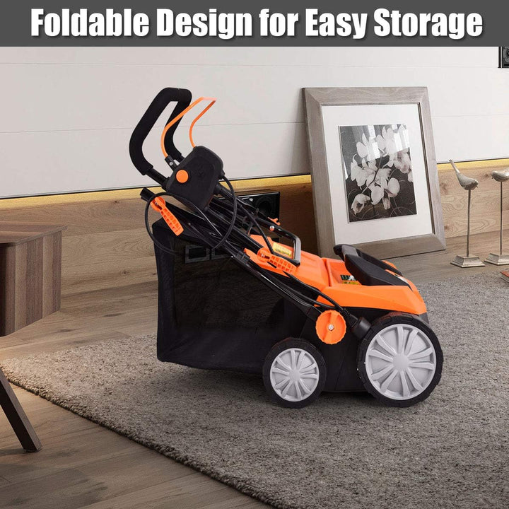 16-Inch Electric Lawn Dethatcher and Scarifier with Collection Bag