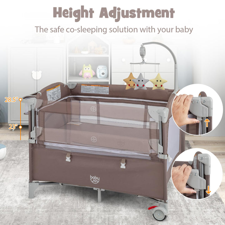 5-in-1 Multifunctional Composition: This versatile crib serves as a bedside sleeper, travel crib, changing table, cradle, and playpen, offering everything you need as your baby grows.