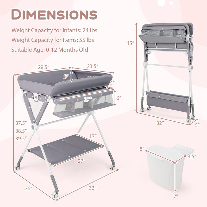 Portable Baby Changing Table with 3-Level Adjustable Height