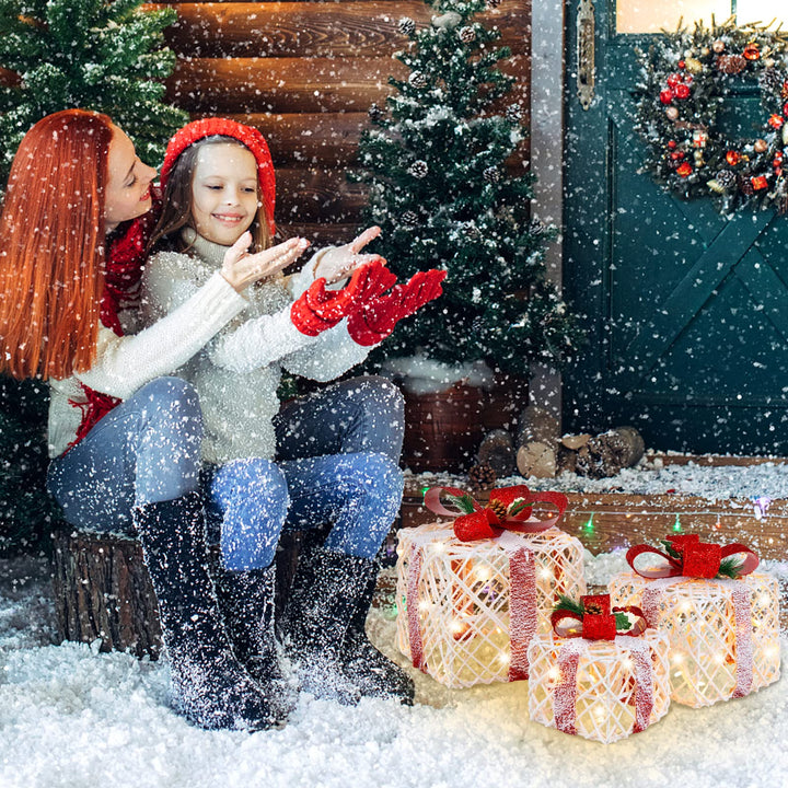 Set of 3 Christmas Lighted Gift Boxes Decorations with Red Bowknots