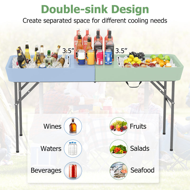 5 FT Folding Ice Cooler Table with Double Sinks for Camping Party Picnic Wedding