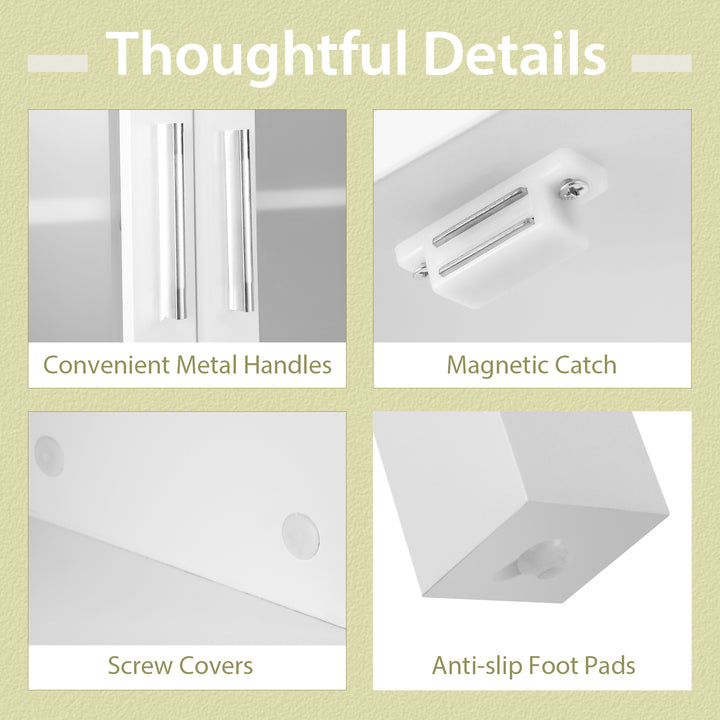 Elegant Frosted Glass Doors: Featuring two beautifully frosted glass doors, this cabinet adds a touch of elegance and charm to any bathroom. The doors, complemented by convenient metal handles, offer easy access to the storage space within.