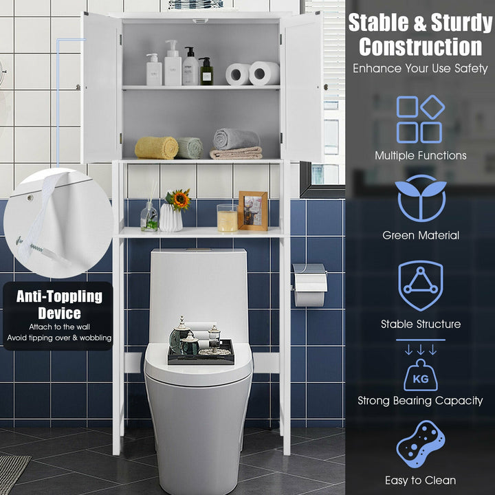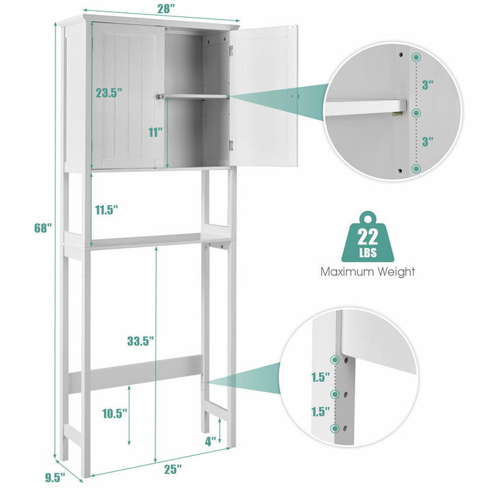 Optimize your bathroom space with this compact and versatile Over-the-Toilet Storage Cabinet. Its space-efficient design allows it to be neatly positioned above the toilet or washing machine, making it a perfect solution for small bathrooms or laundry rooms. Ensure to check the dimensions for compatibility with your space.