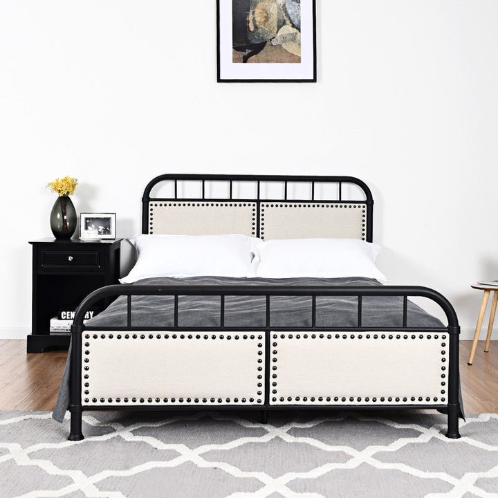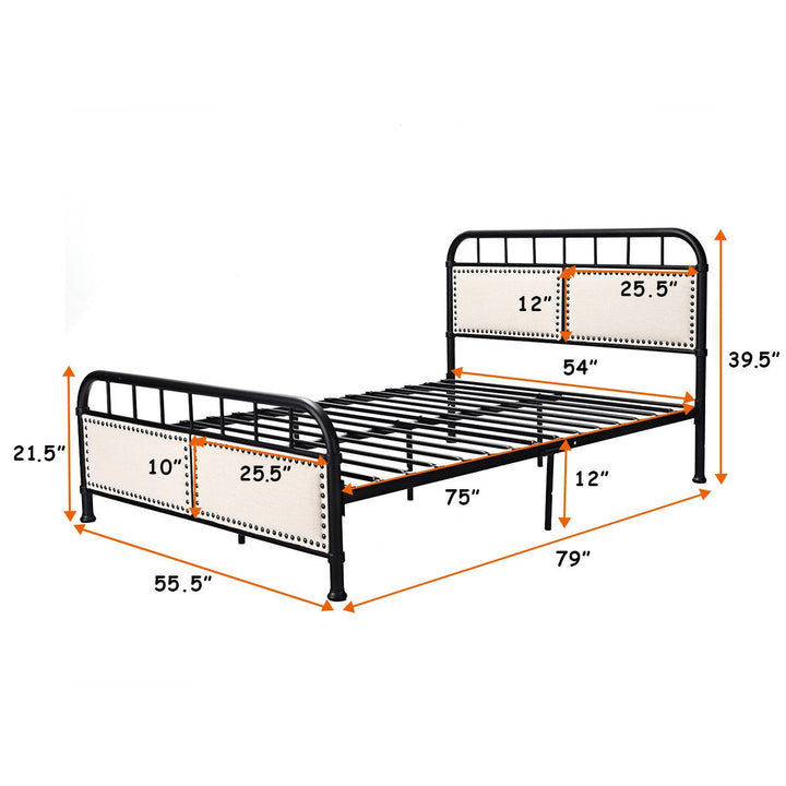 Full Size Metal Upholstered Panel Headboard Bed Frame