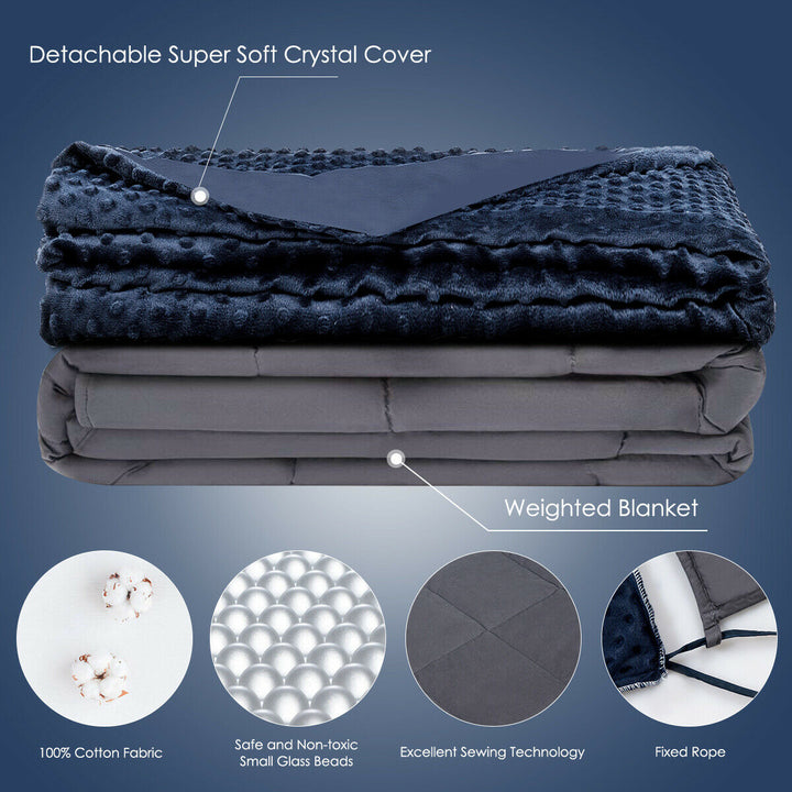 Introducing our Luxurious Weighted Blanket, thoughtfully designed to enhance your sleeping experience by providing the comforting sensation of a gentle hug. Equipped with a detachable super soft crystal quilt cover, this blanket combines comfort, functionality, and ease of maintenance, making it a versatile addition to your relaxation routine.