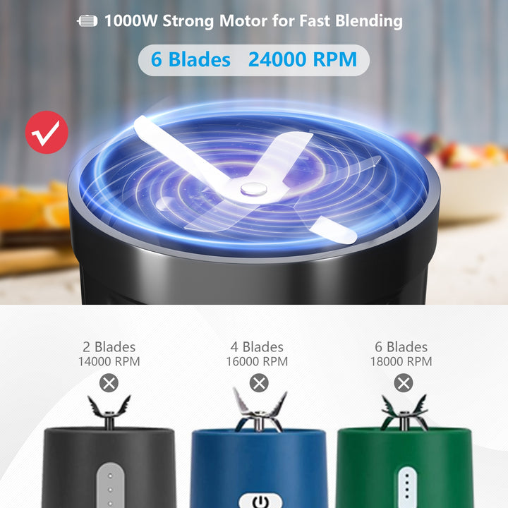 1000W Portable Blender with 6-Blade Design
