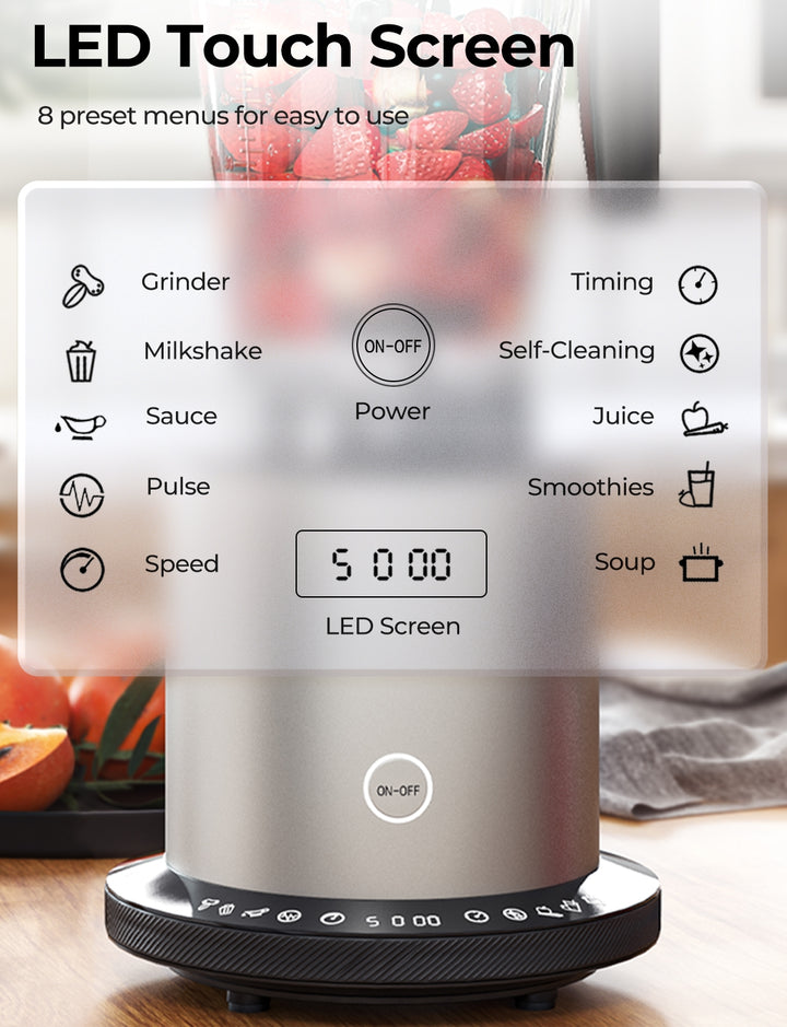 Versatile Pre-Setting Programs: Transform your kitchen routine with 8 pre-setting programs that convert this appliance into a juicer, grinder, and ice crusher at the touch of a button. A bonus tamper ensures even mixing, enhancing the flavor of your creations.