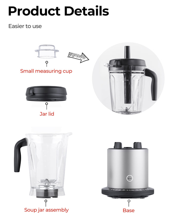 Safety and Durability Combined: Enjoy peace of mind with our scratch-resistant, large capacity pitcher. Its clear scale and high perspectivity allow for easy monitoring of your foods texture, while the ergonomic handle provides comfortable lifting and handling.