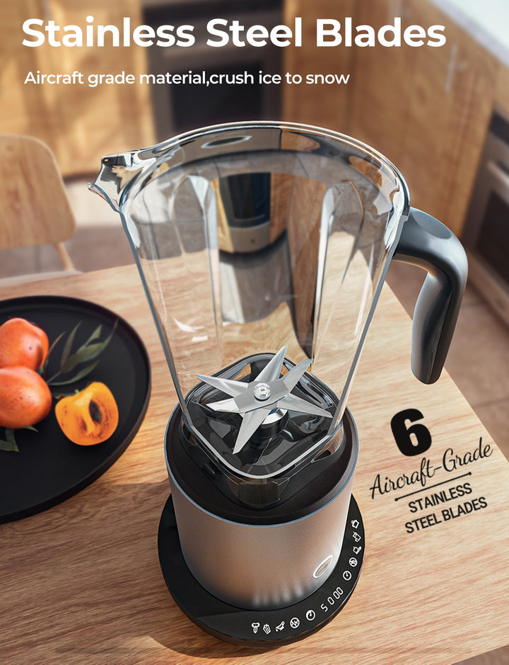 Precision Blending: Equipped with 6 stainless steel blades and powered by a 1500W motor, this blender delivers unmatched efficiency. Ten adjustable speeds and a smart timer give you complete control over your foods texture, with a removable measuring cup for added convenience.