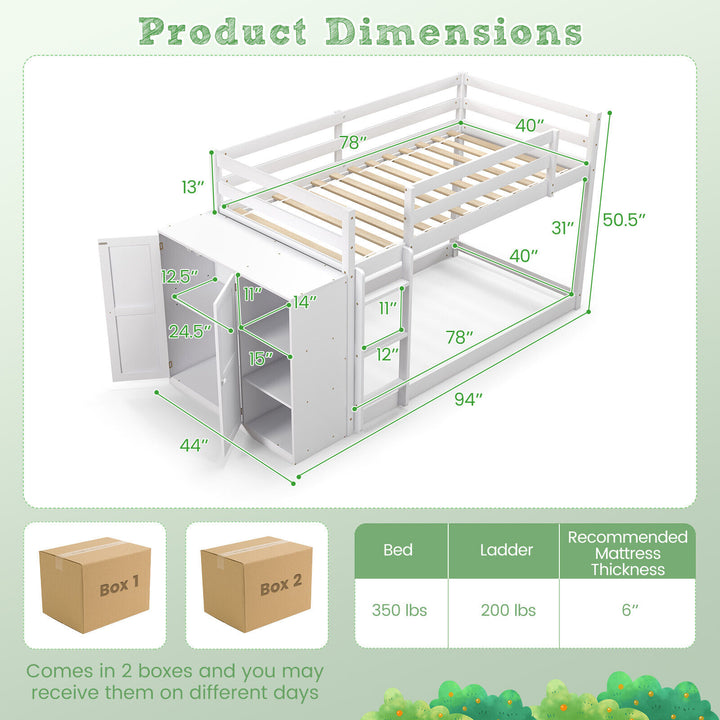 Modern Design and Easy Assembly: With a sleek white finish, this bunk bed complements a variety of bedroom decors, adding a touch of elegance to your childs space. It measures 94" x 44" x 50.5" (L x W x H) and comes in two packages with clear instructions for straightforward assembly.