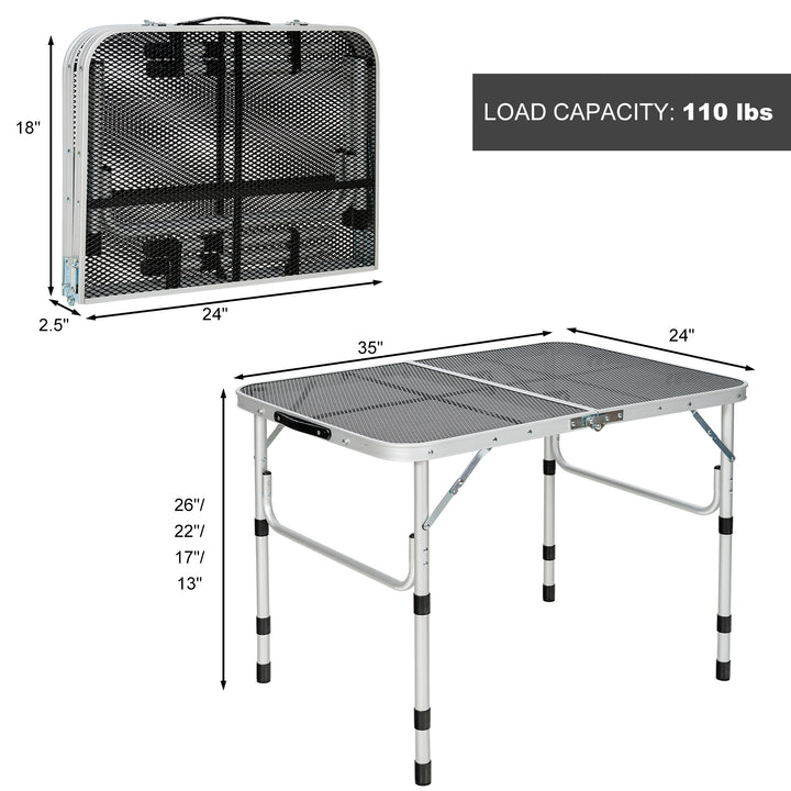 Durable Iron Mesh Tabletop: The premium iron mesh design not only enhances heat dissipation but also provides a sturdy and reliable surface for all your outdoor needs. The spacious 35" x 24" tabletop offers ample space for dining, cooking, or storage.
