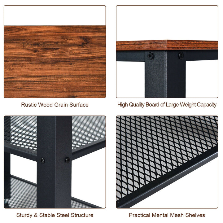 Ample Storage Solutions: Comes with two metal grille shelves and a spacious top surface, perfect for holding books, magazines, laptops, and even a microwave. The design accommodates storage boxes on the shelves for organizing sundries, keeping your space tidy.