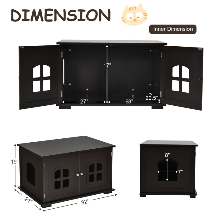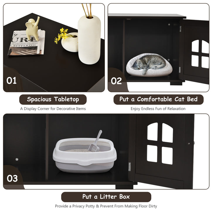 Versatile Design: With its decorative appeal, this cat house adds a cozy touch to any space, serving dual purposes as a pet house or litter box enclosure and a chic nightstand or side table. The option for a left or right entryway allows flexibility in assembly based on your space requirements.