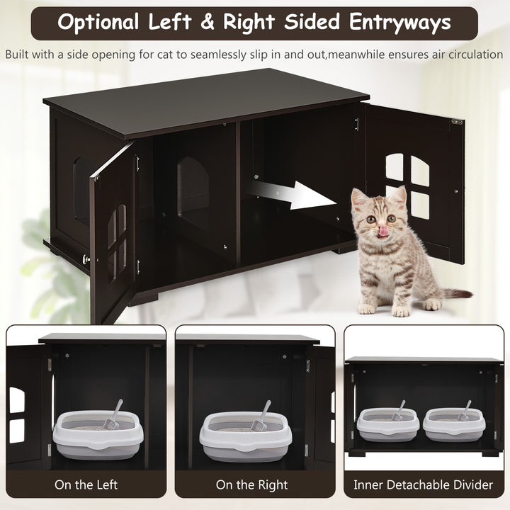 Large Wooden Cat Litter Box Enclosure Hidden Cat Washroom with Divider