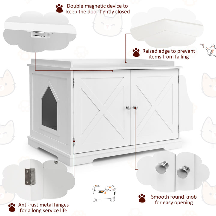 Versatile Utility: This cat furniture excels in functionality, serving multiple purposes to meet both you and your pets needs. Use it to conceal a litter box, offer your cat a private sleeping area, or utilize it as chic furniture in your living area.