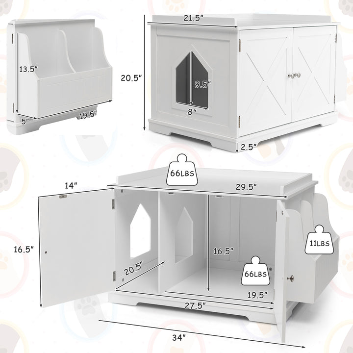 Large Wooden Cat Litter Box Enclosure with the Storage Rack