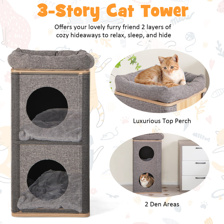 3-Story Cat House with Scratching Board for Indoor Cats