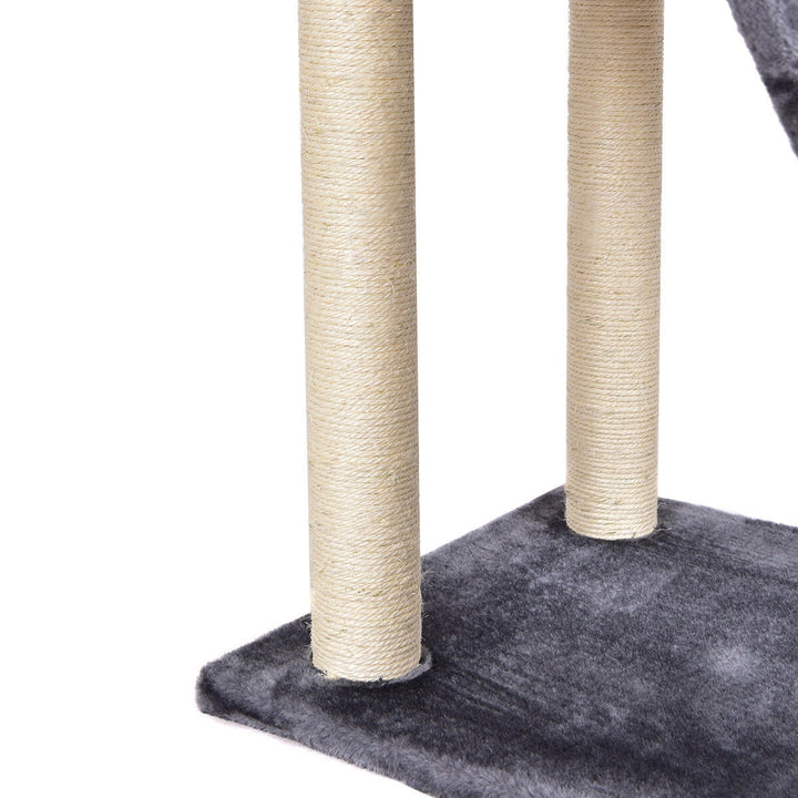 Skin-friendly and Durable Materials: The cat tree is covered with a skin-friendly plush fabric, offering a soft and inviting surface for your cat. Natural sisal rope adorns the posts, serving as the perfect scratch pad to keep your cats claws healthy while safeguarding your furniture.