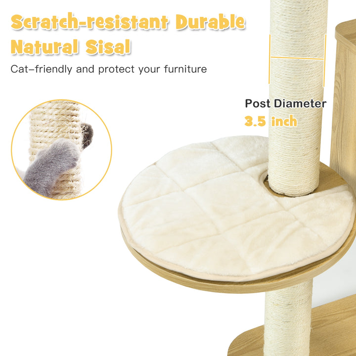 Complete Sisal Coverage for Scratching: Unlike other cat trees, every pillar of our cat activity tree is fully wrapped with natural sisal rope, catering to your cats instinctual scratching and climbing desires. This feature helps to develop healthy scratching habits while keeping your furniture safe from damage.
