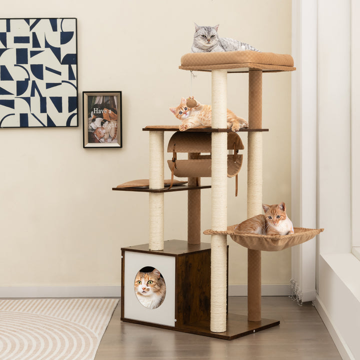 Elegantly Designed for Any Home: With its minimalist gray/brown hues and contemporary aesthetics, this cat activity center complements a wide range of interior themes. Measuring 25.5" x 16" x 53" (L x W x H), it occupies a modest footprint, fitting snugly into any corner or space in your home.