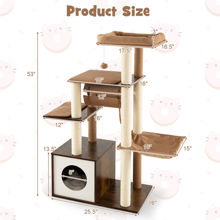 53 Inch Cat Tree with Condo and Swing Tunnel