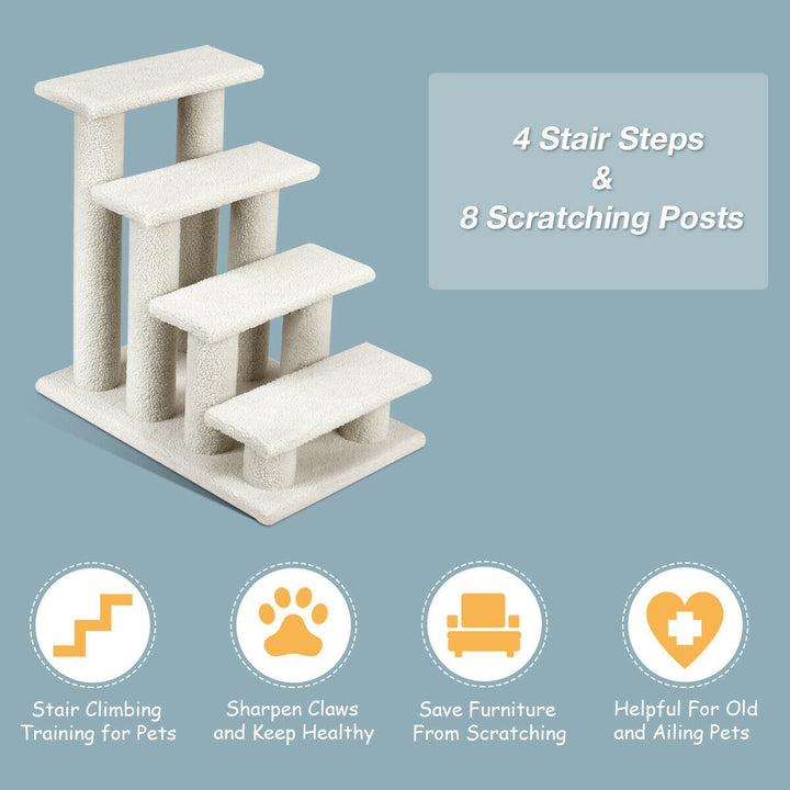 24 Inch 4-Step Pet Stairs Carpeted Ladder Ramp Scratching Post Cat Tree Climber