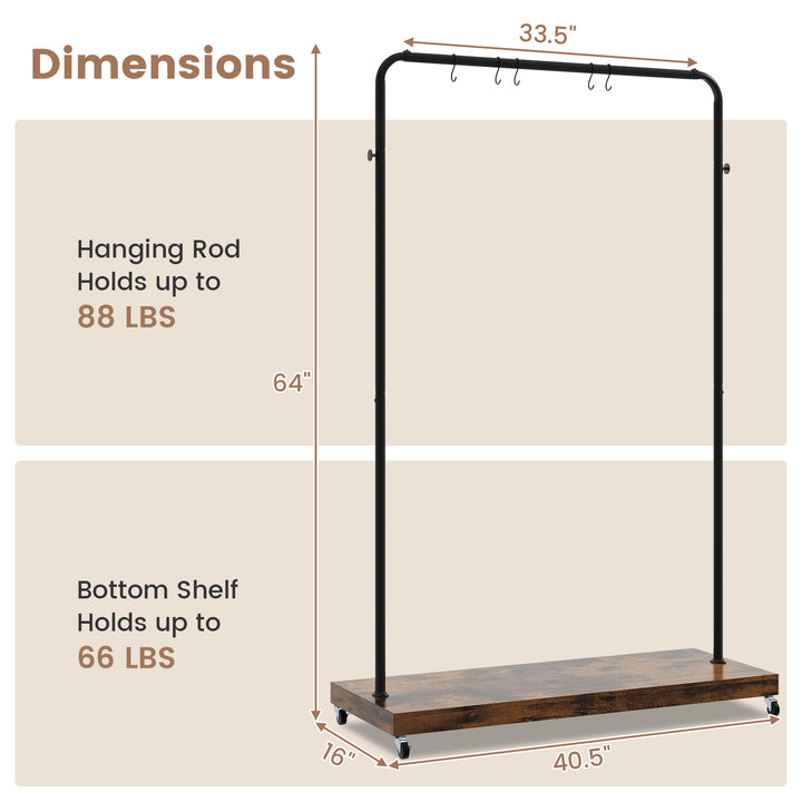 Rolling Garment Rack with Hanging Hooks and Bottom Storage Shelf