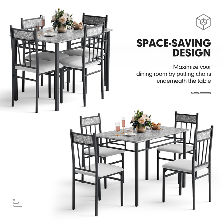 Elegance in Design: The marble-textured surface adds a touch of vintage elegance and chic style, making the dining set the centerpiece of your room. This eye-catching feature, combined with its easy-to-clean nature, ensures your dining area always looks its best.