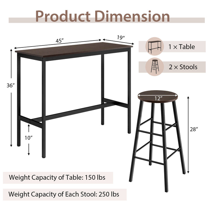 3 Pieces Bar Table Set with Dining Table and 2 Round Stools