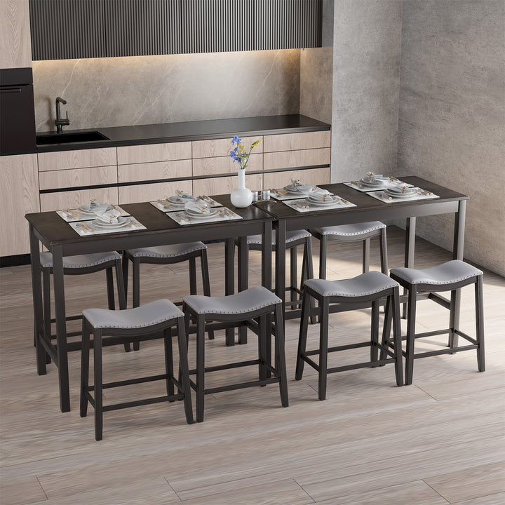 Transform Your Dining Experience: Elevate your kitchen or dining space with our 5-Piece Counter Height Dining Set, meticulously designed to blend seamlessly into any home setting. This set, featuring four 30-inch saddle stools and a 42-inch table, brings both style and functionality to your space, making it a perfect addition for those who cherish both form and practicality in their furniture choices.