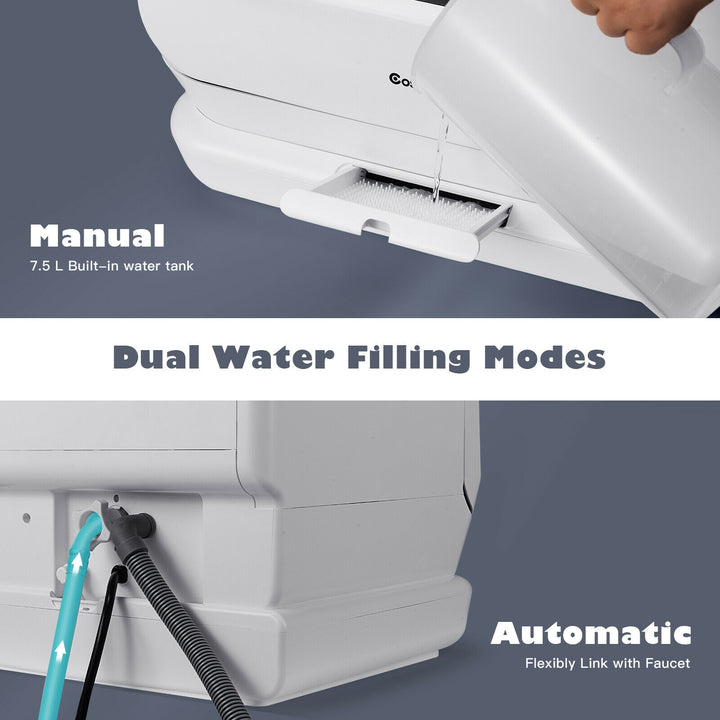 Versatile Water Supply Options: Equipped with a 7.2L built-in water tank, this dishwasher offers the flexibility to operate independently of a direct water connection, making it perfect for situations where a spare sink isnt available. Alternatively, it can be connected to a faucet via an inlet pipe, offering traditional water supply options.