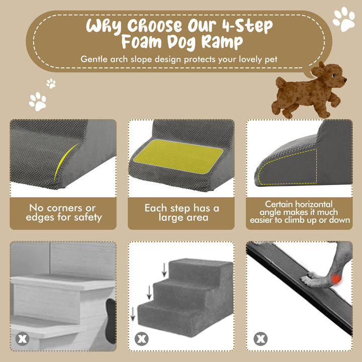 4-Tier Foam Non-Slip Dog Steps with Washable Zippered Cover