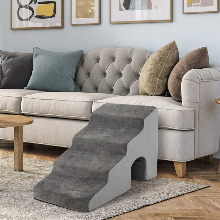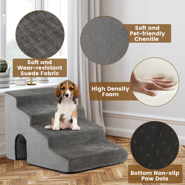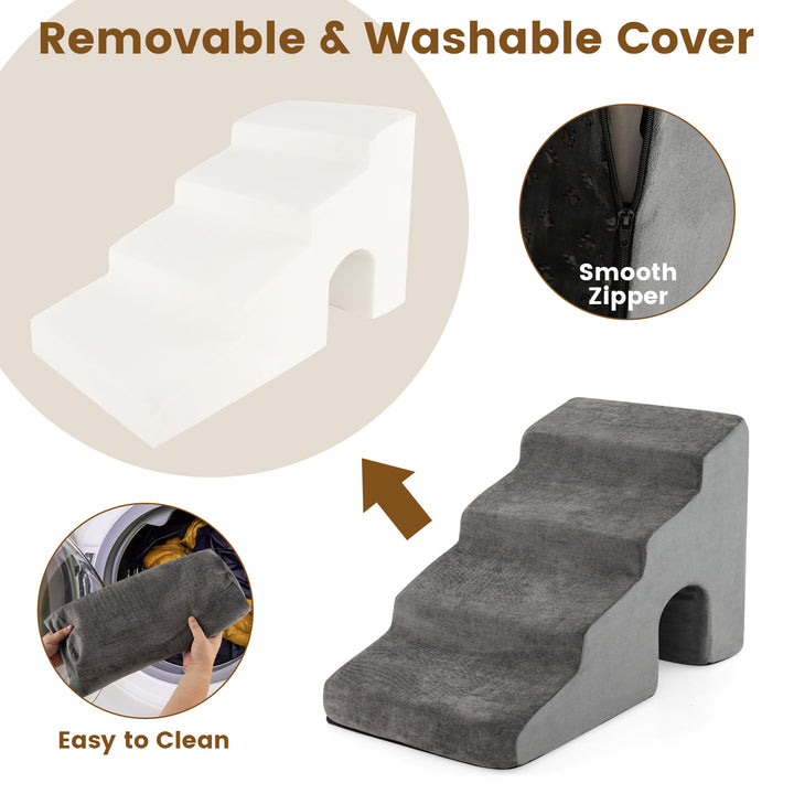 4-Tier High Density Foam Dog Ramps Extra Wide Pet Stairs with Non-slip Bottom