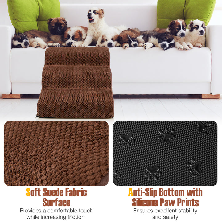 3-Tier Non-Slip Dog Steps with High-Density Sponge and Silicone Paw Prints