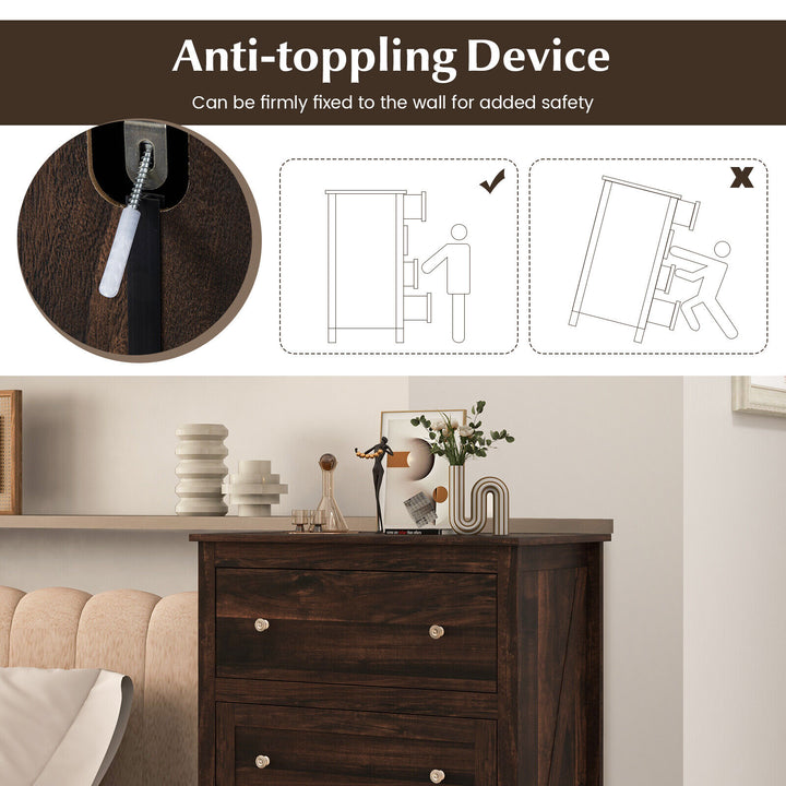 Durable Construction: Made from premium, thick boards, the dresser promises sturdiness and longevity. An anti-toppling device is included for secure wall attachment, ensuring safety and stability.