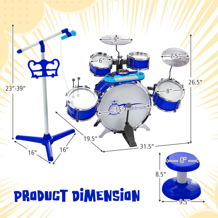 Kids Jazz Drum Keyboard Set with Stool and Microphone Stand