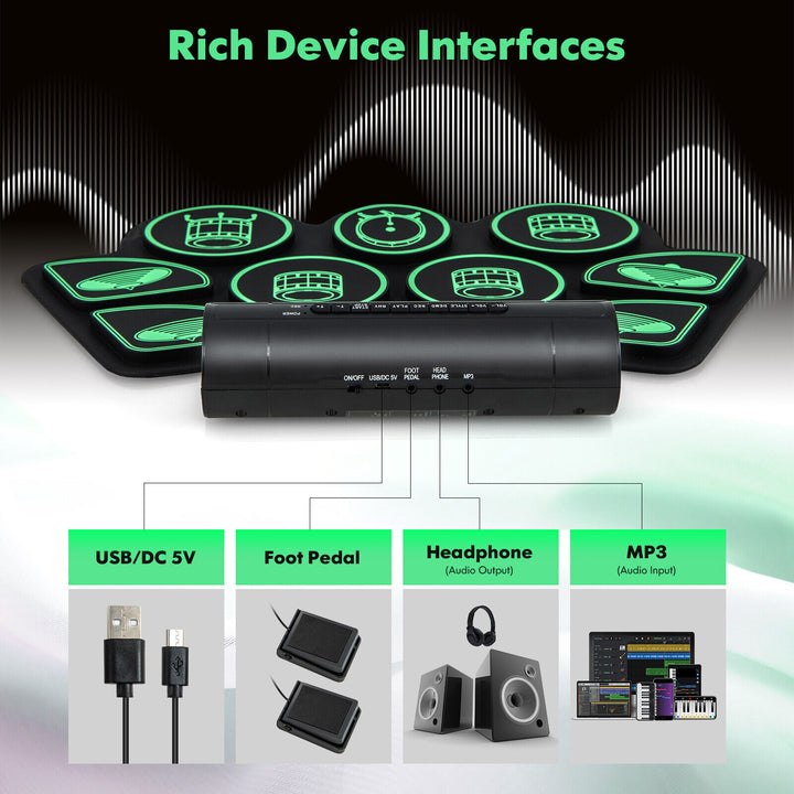 Whether youre a beginner looking to start your musical journey or seeking a convenient and fun way to practice, this 9-pad electric drum set offers everything you need to dive into the world of drumming. Its not just an instrument but a gateway to creativity and musical exploration.