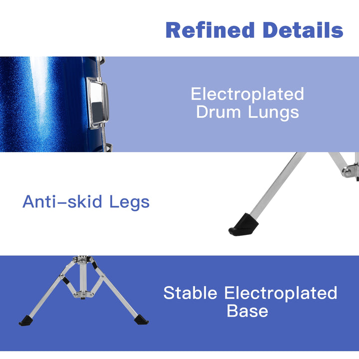 Robust and Durable Construction: The drum set features an electroplated steel framework for rust resistance and wear-resistance, ensuring lasting quality. The stainless steel cymbal produces a crisp sound and can withstand daily practice sessions.