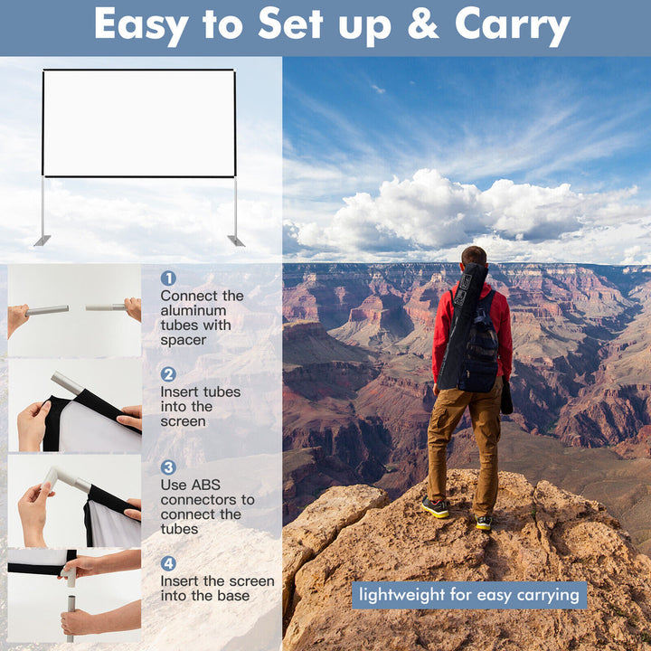 Easy-to-Assemble Detachable Structure: Setup is a breeze with the detachable aluminum tubes and spacers. Simply assemble the frame, attach the screen, and youre ready for showtime. The intuitive design allows for quick assembly and disassembly.