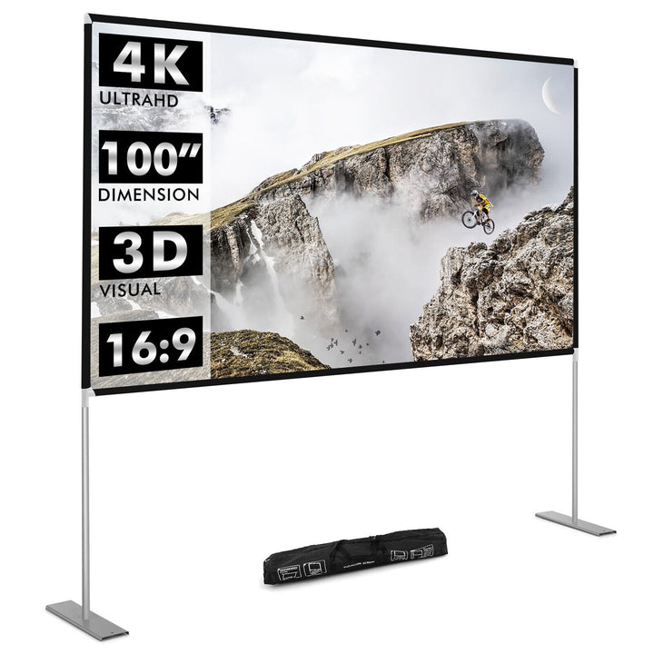 Experience cinematic magic at home or on the go with our versatile Projector Screen, available in expansive 100-inch and 120-inch sizes to suit your viewing needs. Whether youre setting up a cozy movie night in your backyard, delivering a compelling presentation, or reliving sports highlights, this screen enhances your visual experience with crystal-clear imagery.