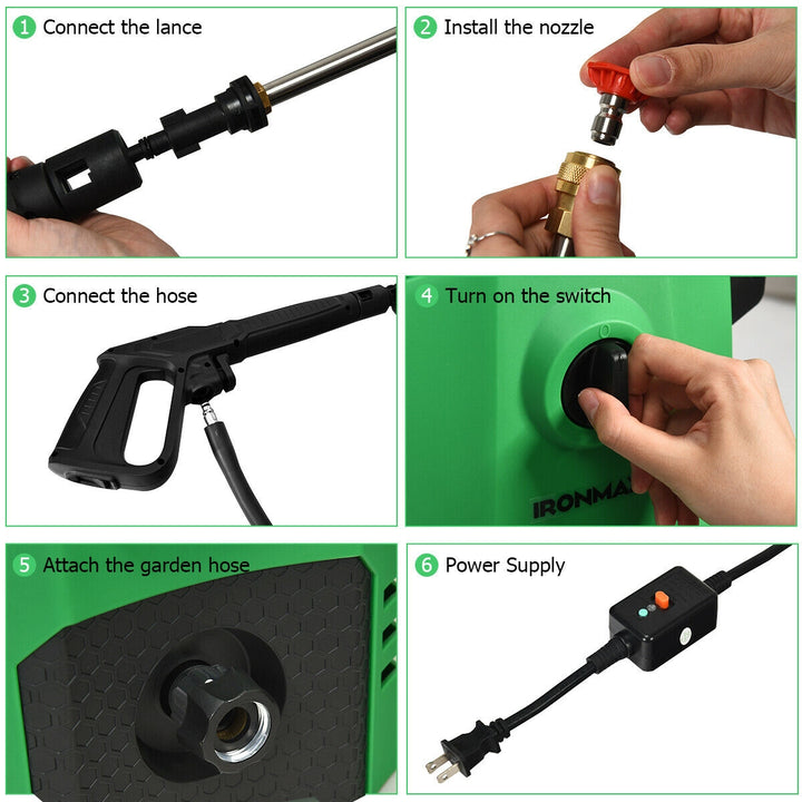 Advanced Safety Features: Safety is paramount, which is why this washer is equipped with an IPX5 waterproof certified plug to prevent electrical leakage. The inclusion of an automated total stop system (TSS) enhances user safety by automatically shutting off the pump when the trigger is not engaged, complemented by a safety lock on the gun to prevent accidental operation.