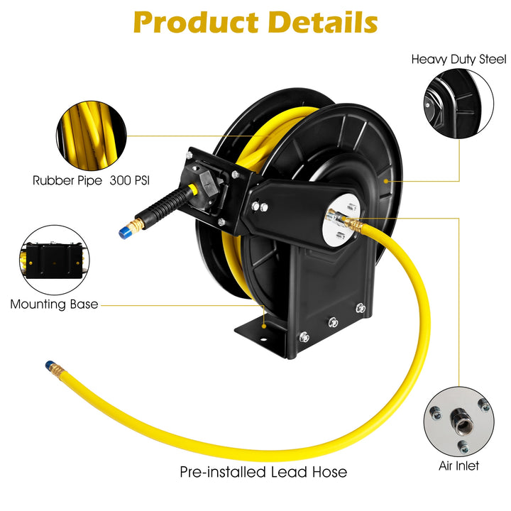 3/8-Inch x 50 Retractable Air Compressor Hose Reel