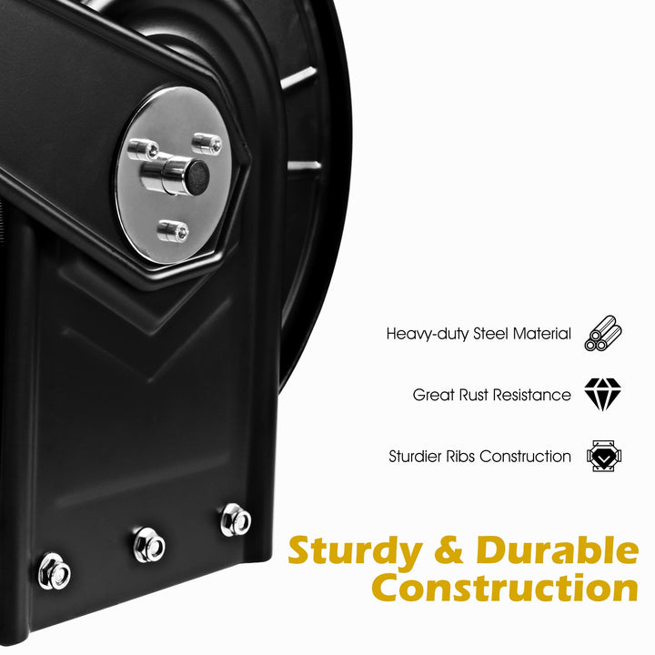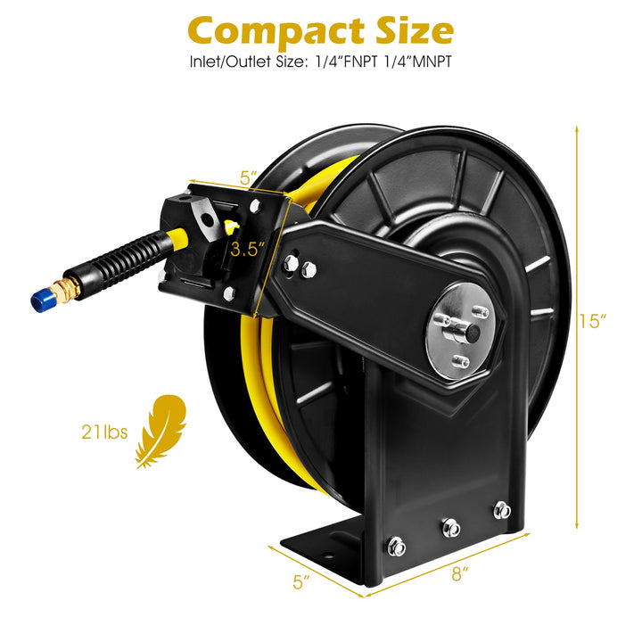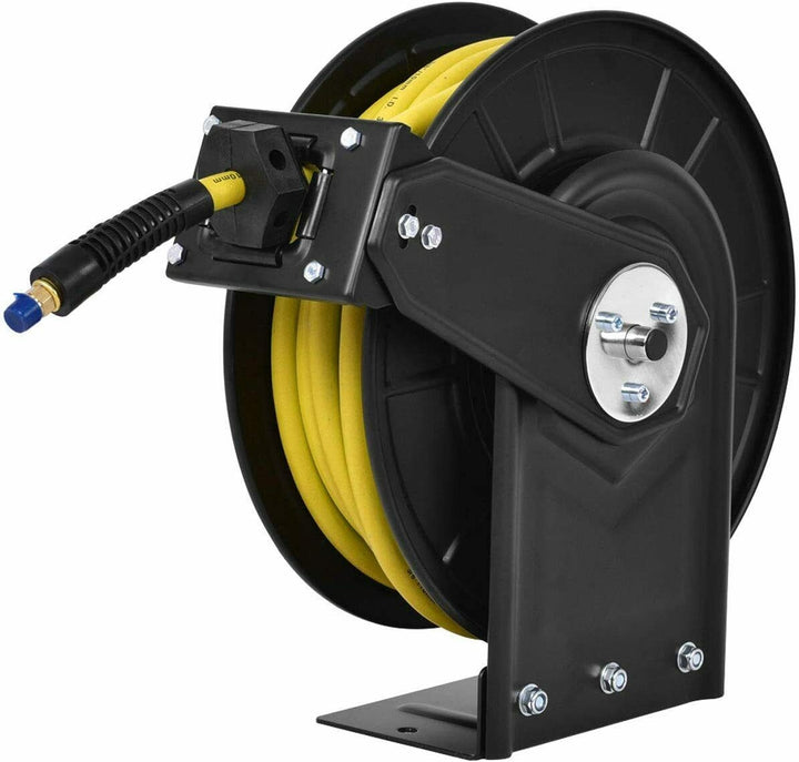 Elevate your workspace organization with our Retractable Hose Reel, a tool designed to streamline your operations while ensuring longevity and efficiency. This hose reel combines robust all-steel construction with advanced features to provide a seamless and reliable solution for managing hoses in workshops, garages, and industrial settings.
