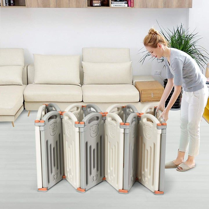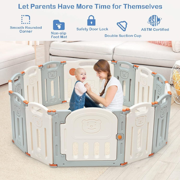 14 Panel Foldable Baby Playpen with Lockable Gate and Non-slip Bases
