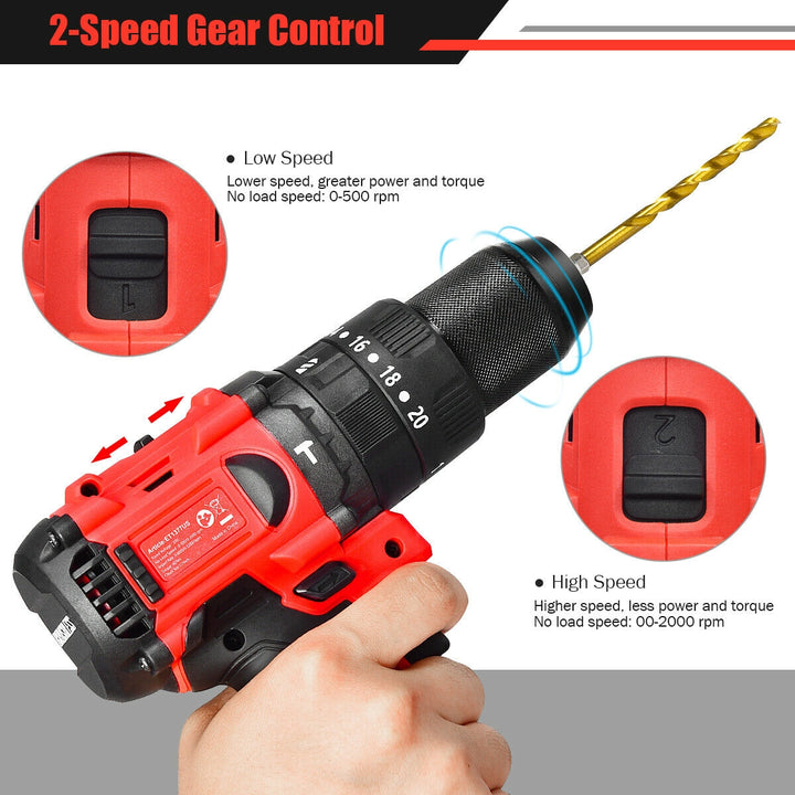 Reversible Rotation and Dual-Speed Functionality: Effortlessly switch between forward and reverse rotations to suit your drilling or driving needs, complemented by a convenient 2-speed adjustment (0-500 RPM and 0-2000 RPM) that caters to different drilling diameters and requirements.