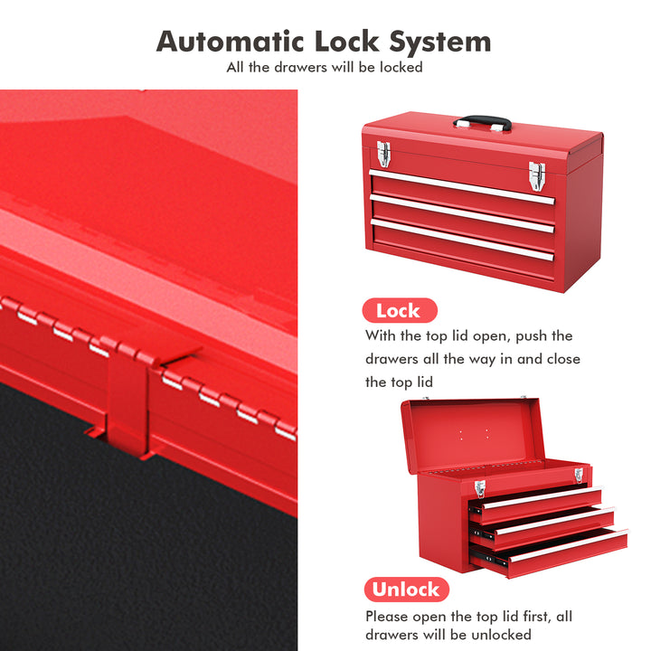 Portable Garage Mechanic Tool Cabinet Box with 3 Drawers