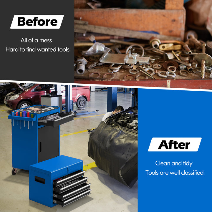 Ample Storage Capacity: Features five drawers, two trays, and a bottom cabinet with a total capacity of 220.5 lbs, offering plenty of space for your tools and accessories.